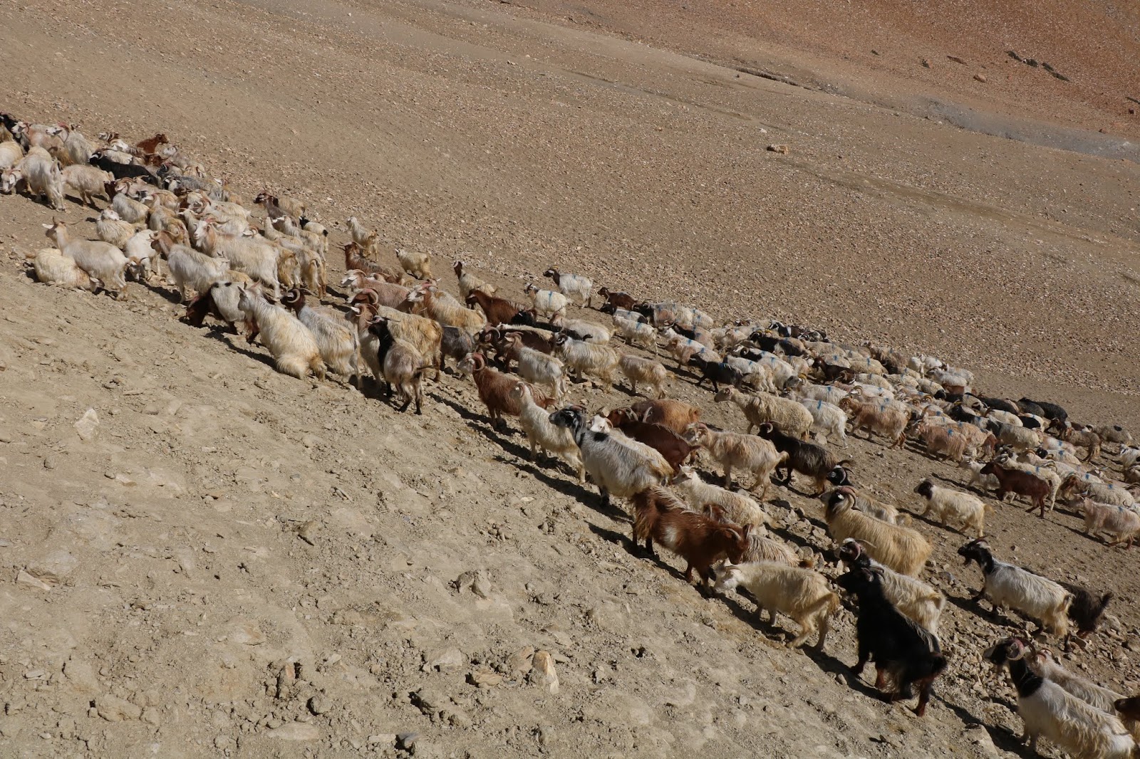 Aujourd'hui, le sentier s'enfonce dans la vallée, et on dévore les kilomètres en compagnie d'un autrichien et d'un coréen. Les paysages paraissent lunaires, et les villages croisés d'une incroyable architecture vernaculaire se fondent dans le décor. Le petit village de Markha et son monastère, nous offre un lieu de pique-nique idéal avant de reprendre la route jusqu'à notre prochaine étape. Depuis notre chambre à Umlung, nous avons une vue imprenable sur le Tacha Gumpa, étrangement perché en haut de son promontoire rocheux. Nous avons aussi la chance d’apercevoir des "blue sheep" aussi appelés des grands bharal, un ruminant de l'Himalaya.