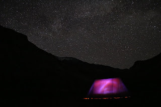 Aujourd'hui, le temps chaud est dégagé nous laisse jouir pleinement des paysages extraordinaires du fond de cette vallée. A chaque fois que l'on se retourne, on aperçoit les montagnes passer et leur lot de couleurs chaudes. Nous faisons une halte au camp de base du Kang Yatze II, au milieu de petits lagons turquoises. La splendeur des paysages nous retient un moment. Après une heure de marche, nous arrivons à notre dernier campement, niché au fond de la vallée, Nymaling. Ici, les alpinistes rencontrent les trekkeurs et les naturalistes dans ce joyeux campement paradisiaque. les sommets enneigés, la rivière, les chèvres et les yaks sont notre décor de rêve, et le col en ligne de mire. Benoit, grimpe avec un américain, au pieds du glacier pour se dégager la vue sur les montagnes. De nuit, une nouvelle session de photo de la voie lactée restera encrée à jamais dans nos mémoires.
